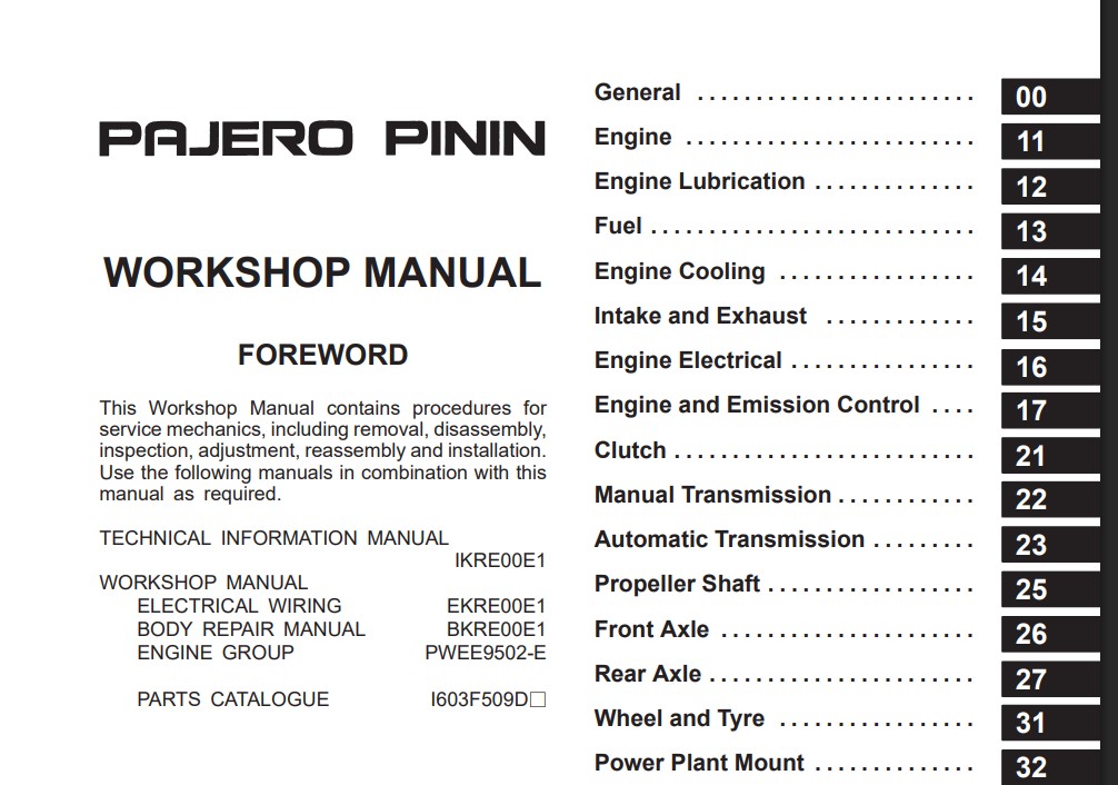 If you own a Mitsubishi Pajero Pinin (2000 – 2003), having access to a reliable service repair manual is essential for maintaining and repairing your vehicle. Whether you are a DIY enthusiast or a professional mechanic, this manual provides comprehensive details to keep your Pajero Pinin running smoothly.
