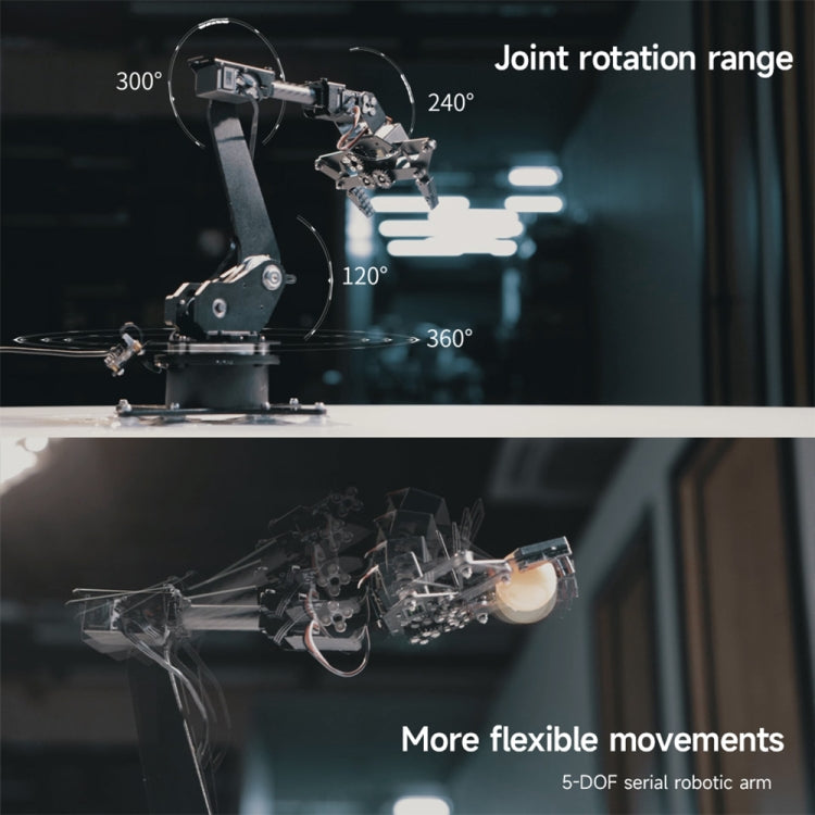 1. RoArm-M1 is a serial robotic arm with a total of 5 degrees of freedom, including the gripping degree of freedom of the gripper